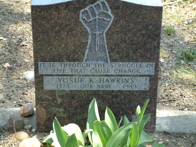 Evergreen Cemetery, Brooklyn, New York Yusuf Hawkins was a gentle, quiet, sixteen-year old black man. Upon scouring the internet researching for this page, this was the only information I was able to find regarding Yusuf Hawkins the person. I did find much regarding the events that took his life and the political maelstrom that was its aftermath - how Yusuf went into Bensonhurst, New York to look at a used car that had been advertised in the paper, how a gang of white men accosted him, and how one of them shot Yusuf twice in the chest just for the color of his skin. It was at that point, it seems that Yusuf the person died and Yusuf the cause began. |